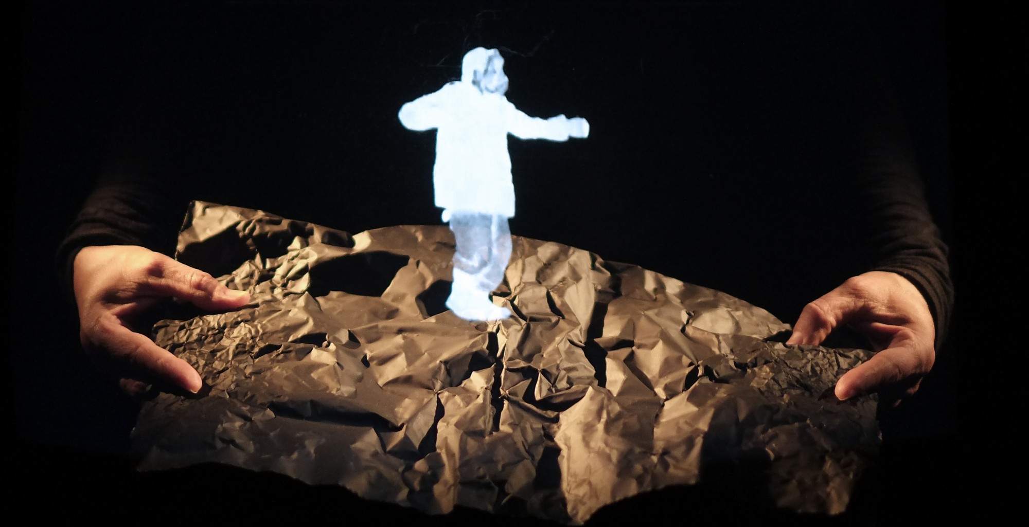 Faire revenir le fantôme de nos souvenirs. Comme c’est souvent par les mains que les esprits sont convoqués, nous plongerons avec nos mains dans l’image, pour faire remonter à la surface les ectoplasmes de nos mémoires. Qu’est-ce qui est vrai, quelle part est fabriquée ? C’est toute l’ambiguïté avec laquelle les artistes s’amusent dans leur petit théâtre holographique où images animées et manipulations en direct naviguent en eaux profondes. Une création qui prend source dans les récits intimes de nos voisin·es.