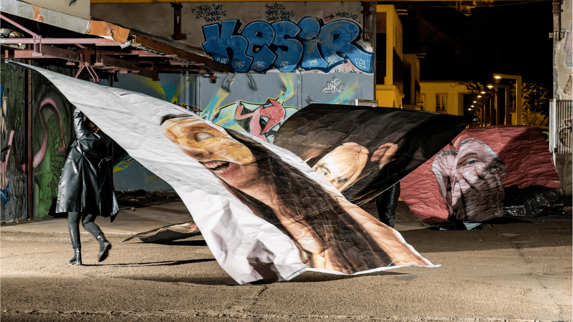 Pour cette déambulation-installative nocturne en espace public, Amélie Poirier s’inspire de femmes photographes américaines des années 60 à 80 pour créer en collaboration avec la photographe contemporaine française Lucie Pastureau : un parcours chorégraphique et marionnettique. Porté par l’énergie rock et contestataire de l’époque et inspiré notamment par les « freaks » photographiés par Diane Arbus, 20e Rue Ouest met en mouvement les photographies de Lucie Pastureau à travers la lumière, des systèmes de mécanisation des images, de la textilisation photographique et des processus chorégraphiques. De l’acte de prise de vue, à la chambre noire, du noir et blanc à la couleur, c’est tout le procédé photographique qui est ici mis en scène. La présence d’une photographe-marionnettiste vient par ailleurs raconter l’acte de création en résonance avec des écrits sur la photographie, mettant à jour un espace réflexif sur ce que raconte l’acte ambivalent de photographier. On trouve dans cette réflexion un écho dans les enjeux de représentation et d’auto-représentations contemporains.