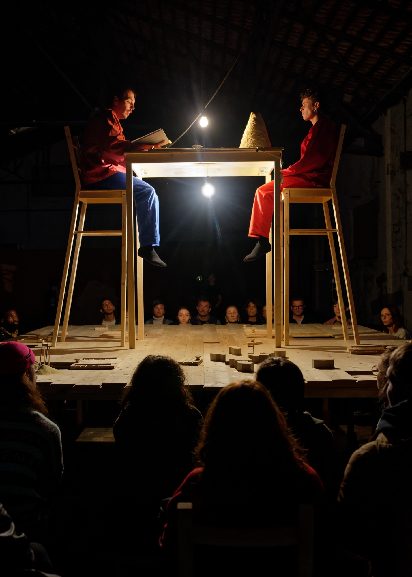 Pour cette édition de nos Plateaux Marionnettes en plus des 4 présentations de projets habituelles. Nous avons souhaité penser un temps additionnel en fin de journée pour permettre à deux projets déjà créés d’être présenté par leur équipe. Il s’agit pour elleux de sensibiliser les professionnels réunis autour de leur démarche et donner envie aux présents de se pencher sur le calendrier des dates à venir pour venir découvrir ce travail.