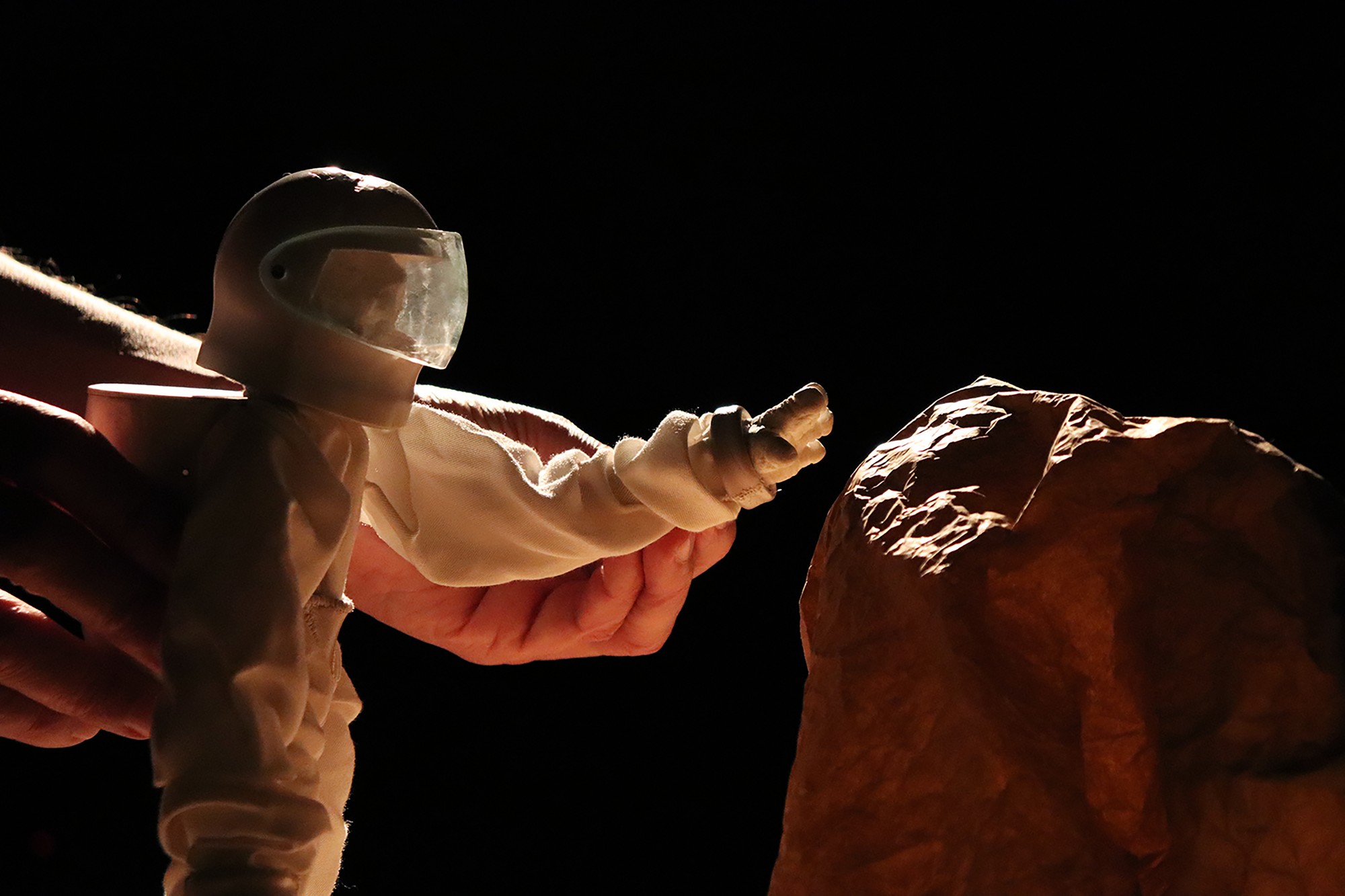 YSS, c’est l’histoire d’un marin qui rêve d’être astronaute. En suivant son parcours, nous basculons avec lui dans un espace onirique où des souvenirs et des projections se déploient sur scène à travers une scénographie, des objets et des marionnettes en proie à la météo intérieure du personnage.