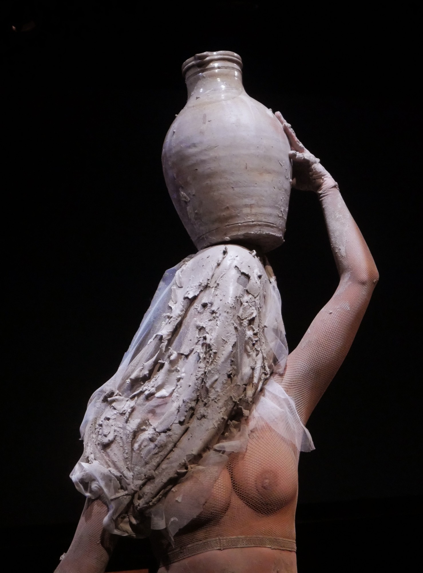En mettant en lumière la figure polysémique des contenants, Cruches tente d’opérer un renversement de nos récits fondateurs sur le corps et la sexualité. La scène devient laboratoire de céramique où la relecture de grands mythes se mêle aux témoignages intimes et élabore une fresque qui chante les puissances, les violences et les contradictions des corps qui contiennent.