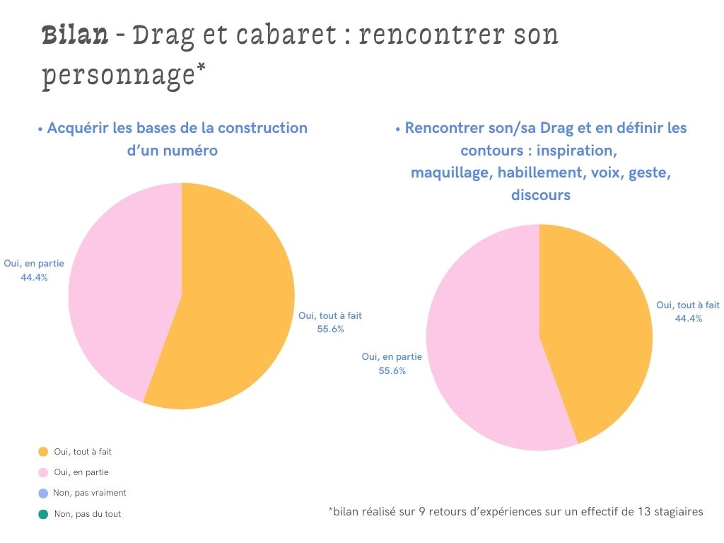 Publics : Artistes de scène, performeur.euse.s, danseur.euse.s, chanteur.euse.s, marionnettistes, clowns, comédien.ne.s ou toute personne curieuse de découvrir son Drag et de mettre un premier pied sur scène